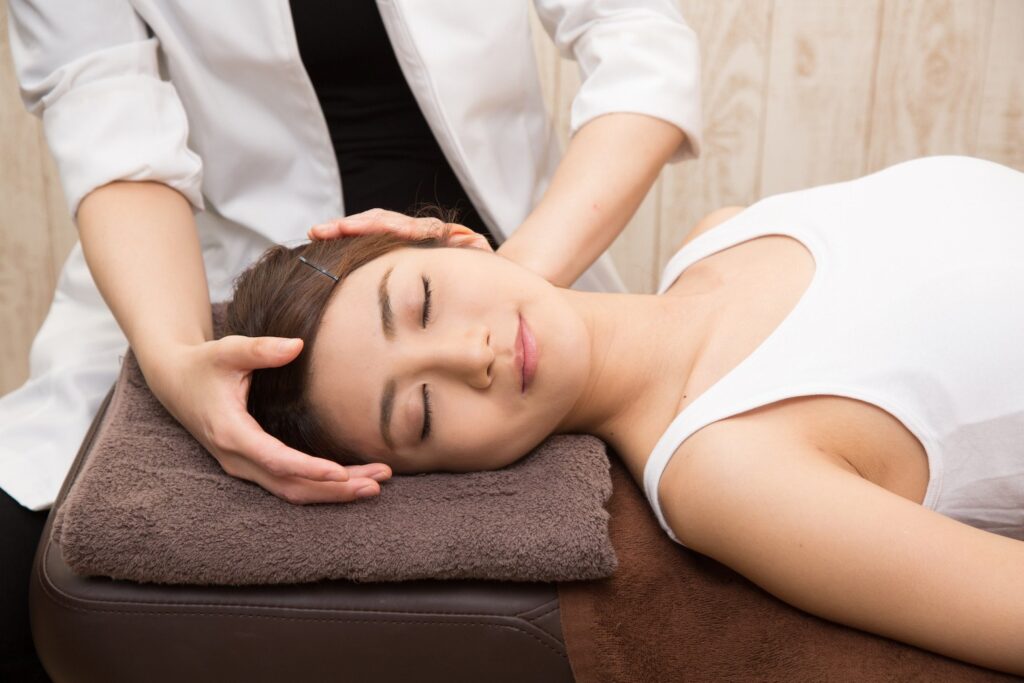 眠ってしまうほど優しい力で頭から足先まで取りこぼしなくアプローチし歪みを整える事で小顔、猫背、ストレートネック、肩こり、腰痛、反り腰、O脚•X脚、代謝アップ、ダイエットなどのお悩みに◎